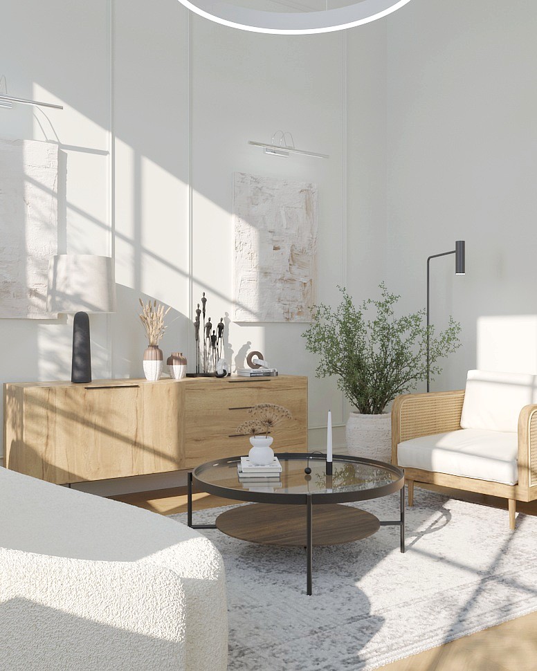 Biel, drewno, miękkie tkaniny oraz czarne, metalowe akcenty — tak w skrócie można opisać styl, w którym projektuję. Każda grafika i każdy element dekoracyjny pojawiają się we wnętrzu w sposób przemyślany, tak aby dopracować przestrzeń i podkreślić jej charakter, bez wprowadzania wizualnego chaosu.