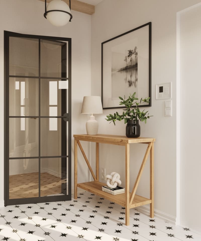 Ponadczasowe kolory, które naturalnie łączą się w spójną całość. Czysta biel i drewno to duet, który zawsze się obroni, a czarne akcenty dodają wyrazistego kontrastu i nadają wnętrzu głębi.